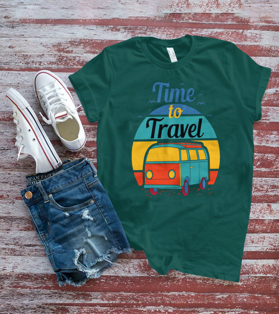Time To Travel Van Adventure Retro Sunset T-Shirt