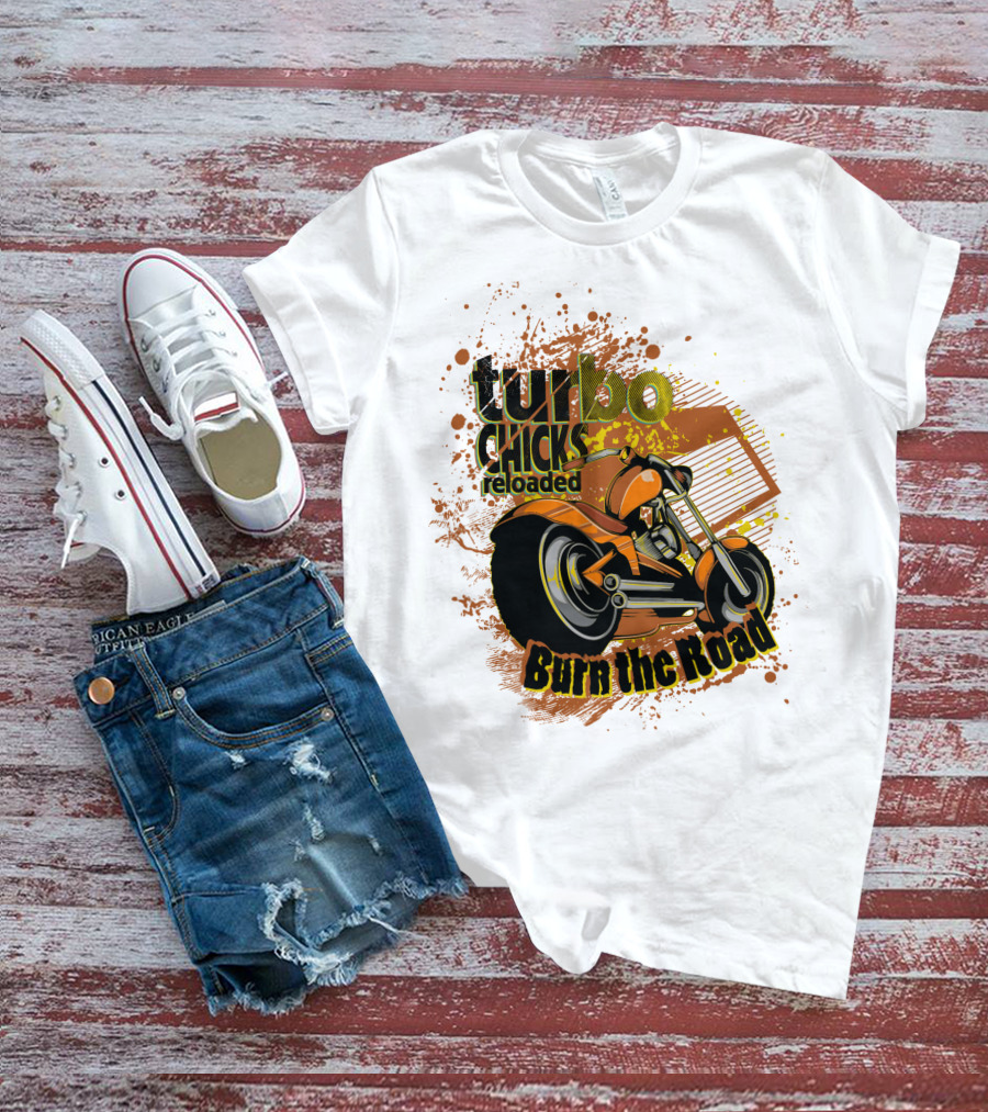 Turbo Chicks Reloaded Burn The Road Motorcycle Adventure T-Shirt