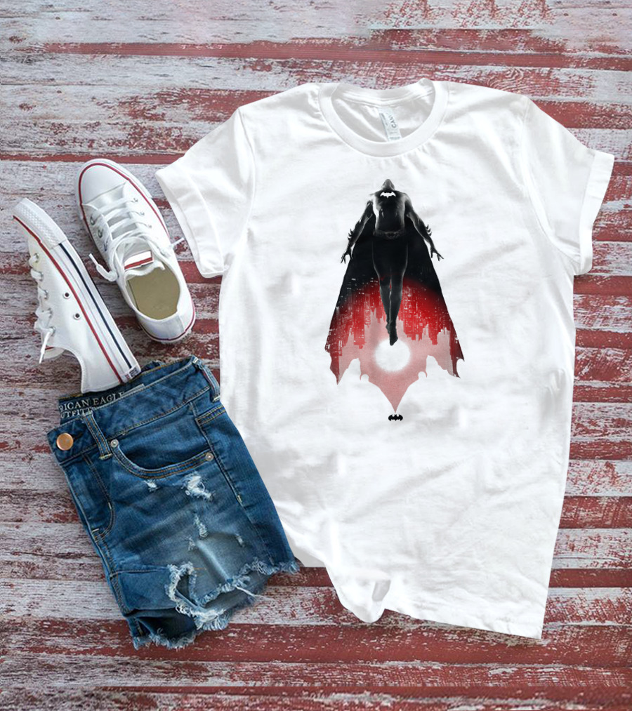Batman Rising Over Gotham City Silhouette Red And Black T-Shirt