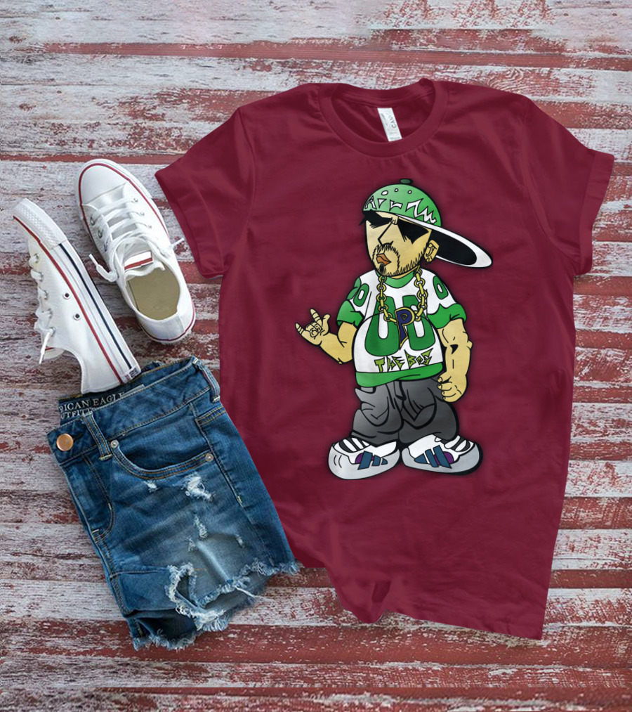 The HipHop Cartoon Character with UP The Posse on Green Snapback and Chain Shirt offers a regular fit. Made from 100% ring-spun cotton that is pre-shrunk to help maintain size and shape after washing. Features reinforced construction details for durability. Available in U.S. standard sizes S-5XL to accommodate various body types.