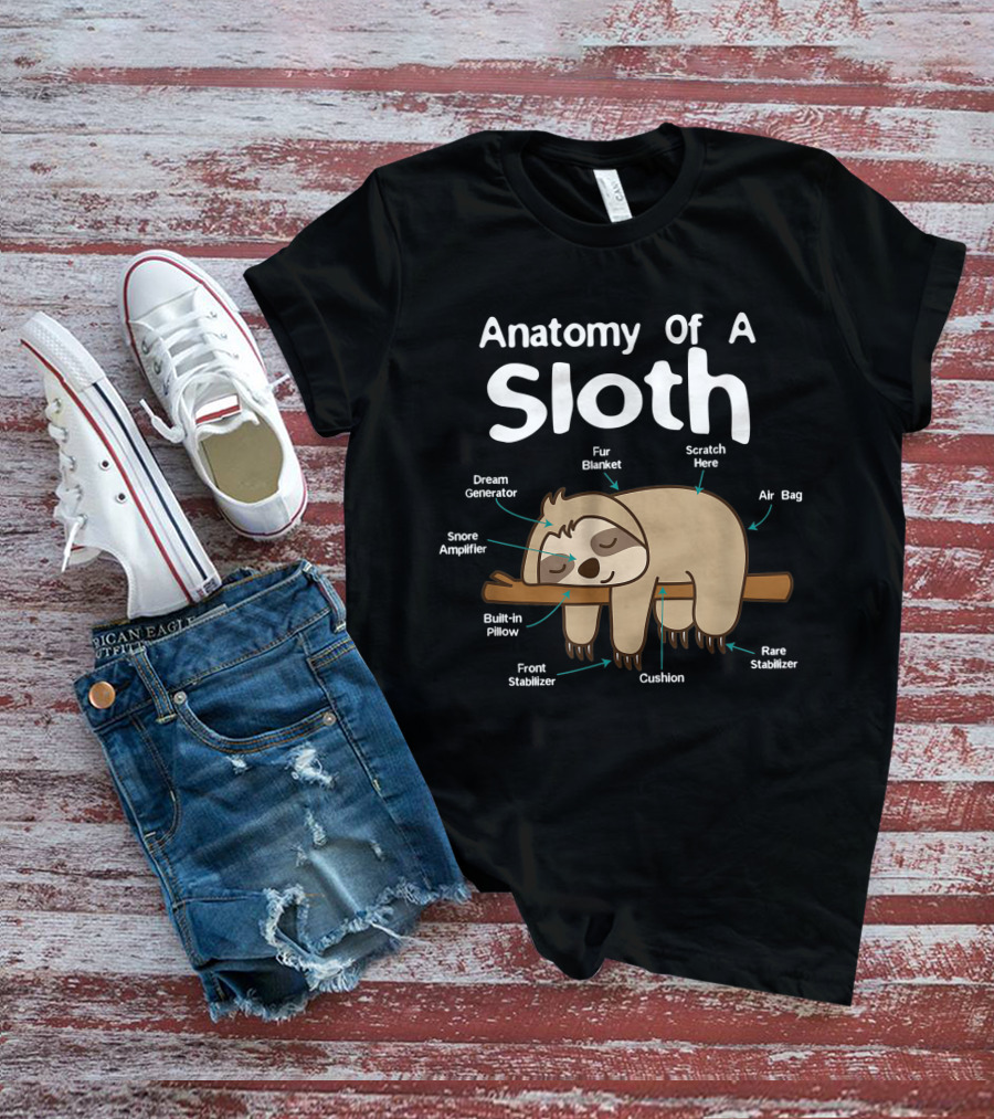 Anatomy Of A Sloth Dream Generator Fur Blanket Snore Amplifier Built-in Pillow Front Stabilizer Cushion Scratch Here Air Bag Rare Stabilizer T-Shirt