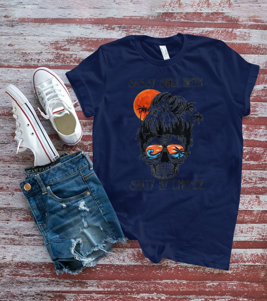Sassy Since Birth Salty By Choice Skull Ocean Sunset Palms T-Shirt