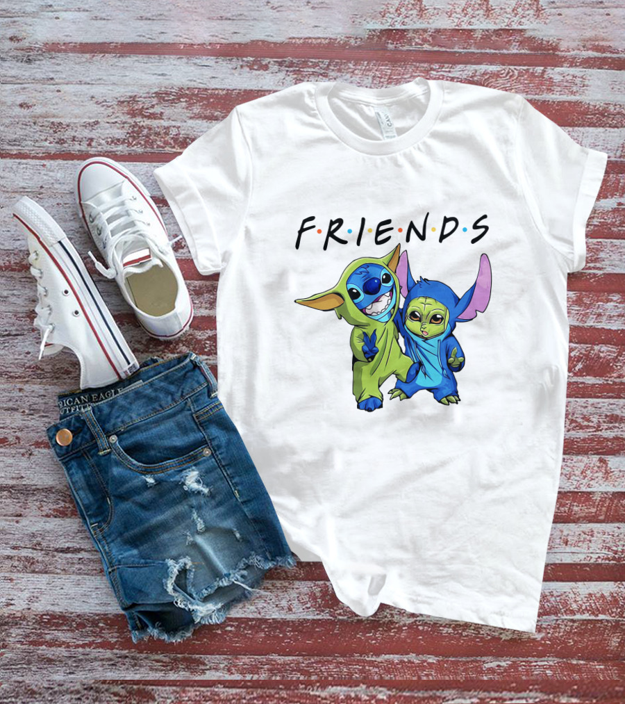 Stitch And Baby Yoda Friends TV Show T-Shirt