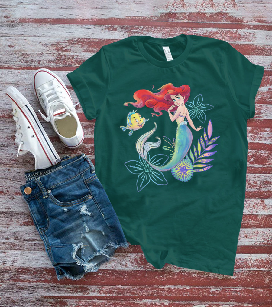 Disney The Little Mermaid Ariel Flounder Floral T-Shirt