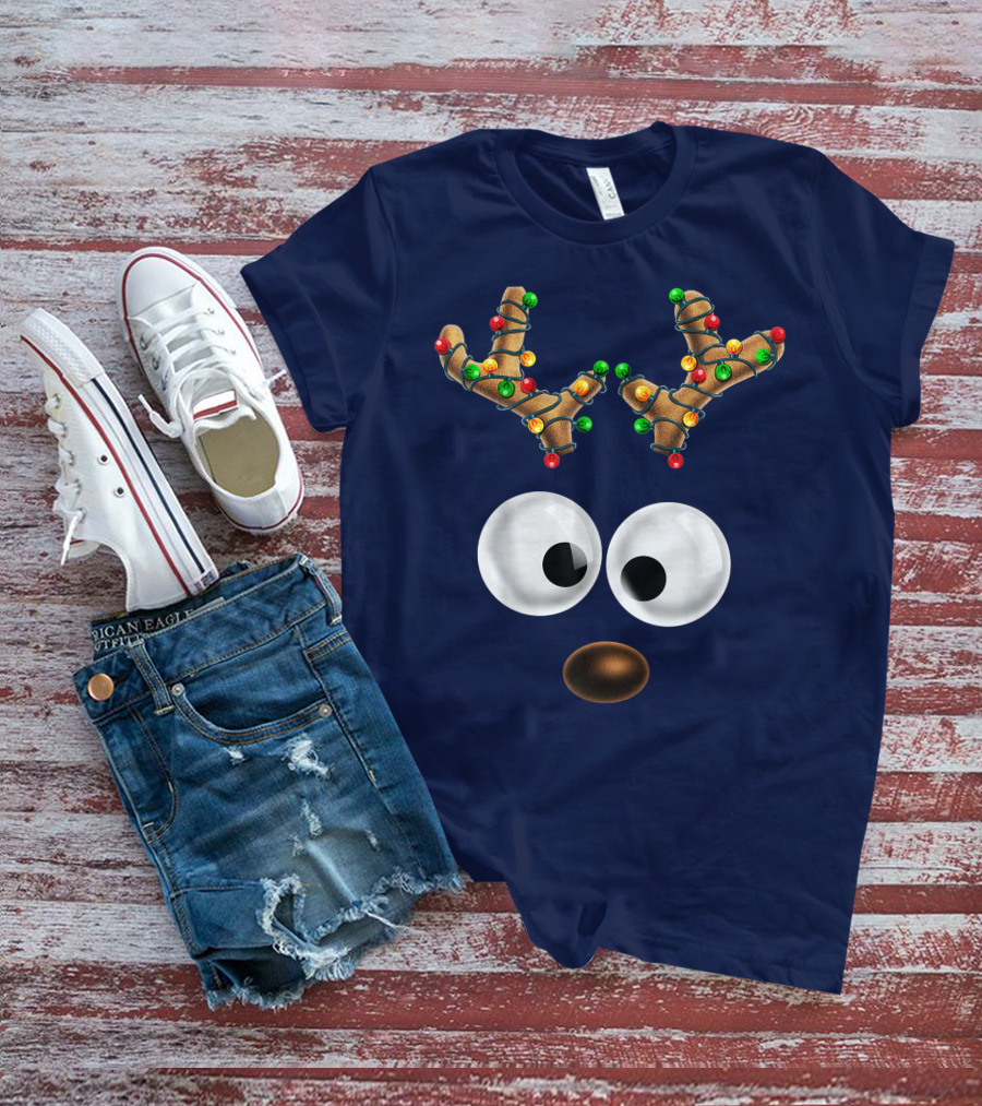 Colorful Lights Reindeer Face Christmas Matching Family T-Shirt