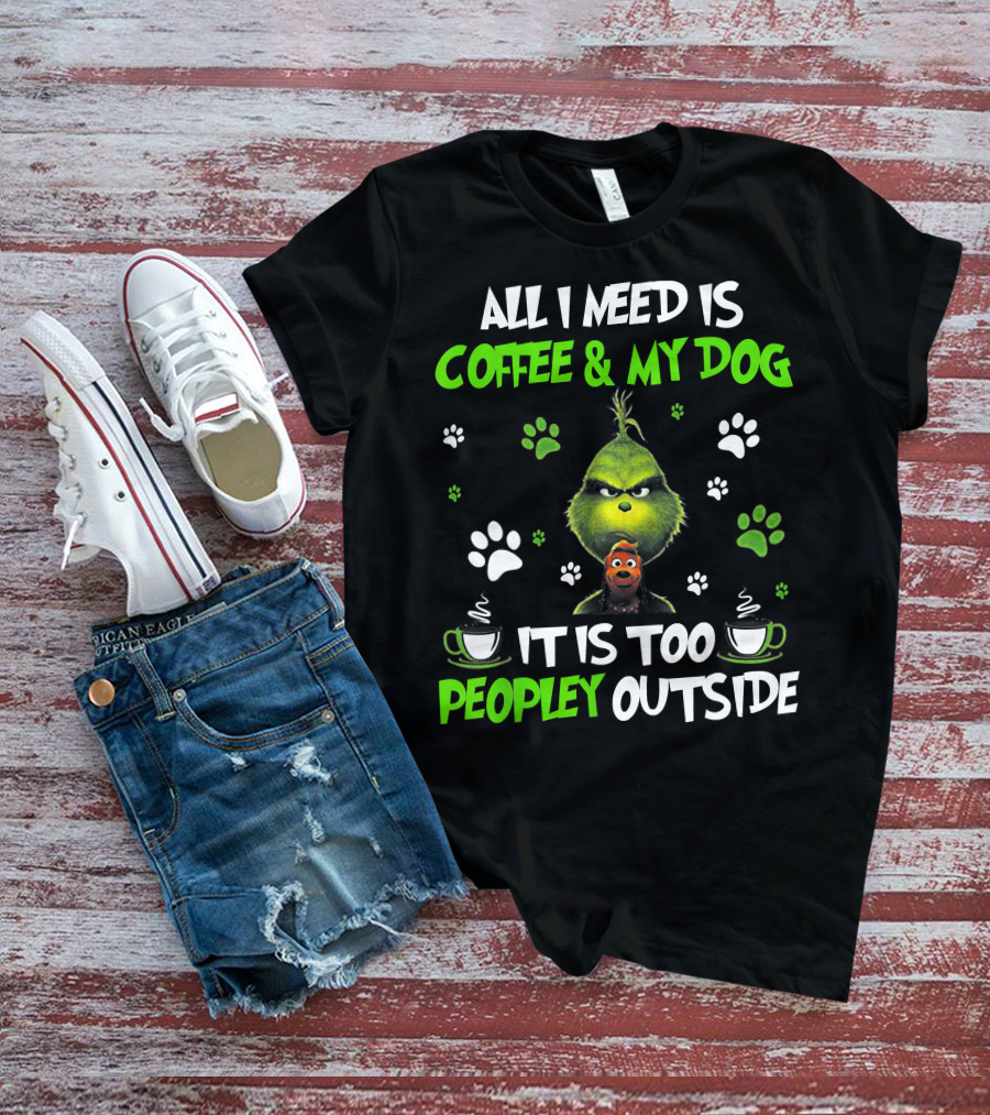 All I Need Is Coffee And My Dog It Is Too Peopley Outside Grinch Paws And Mugs T-Shirt