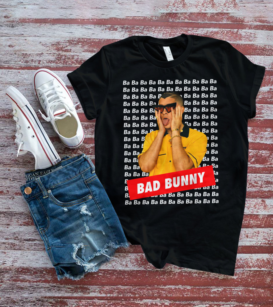BAD BUNNY Ba Ba Ba Pattern Yellow Shirt Sunglasses T-Shirt