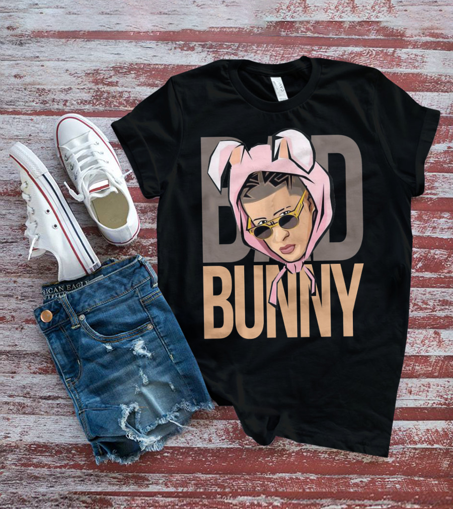 BAD BUNNY Iconic Style With Sunglasses And Bunny Ears T-Shirt