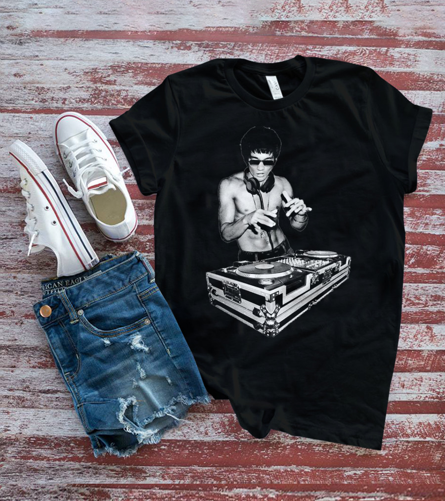 Bruce Lee Mixing Vinyl DJ Decks T-Shirt