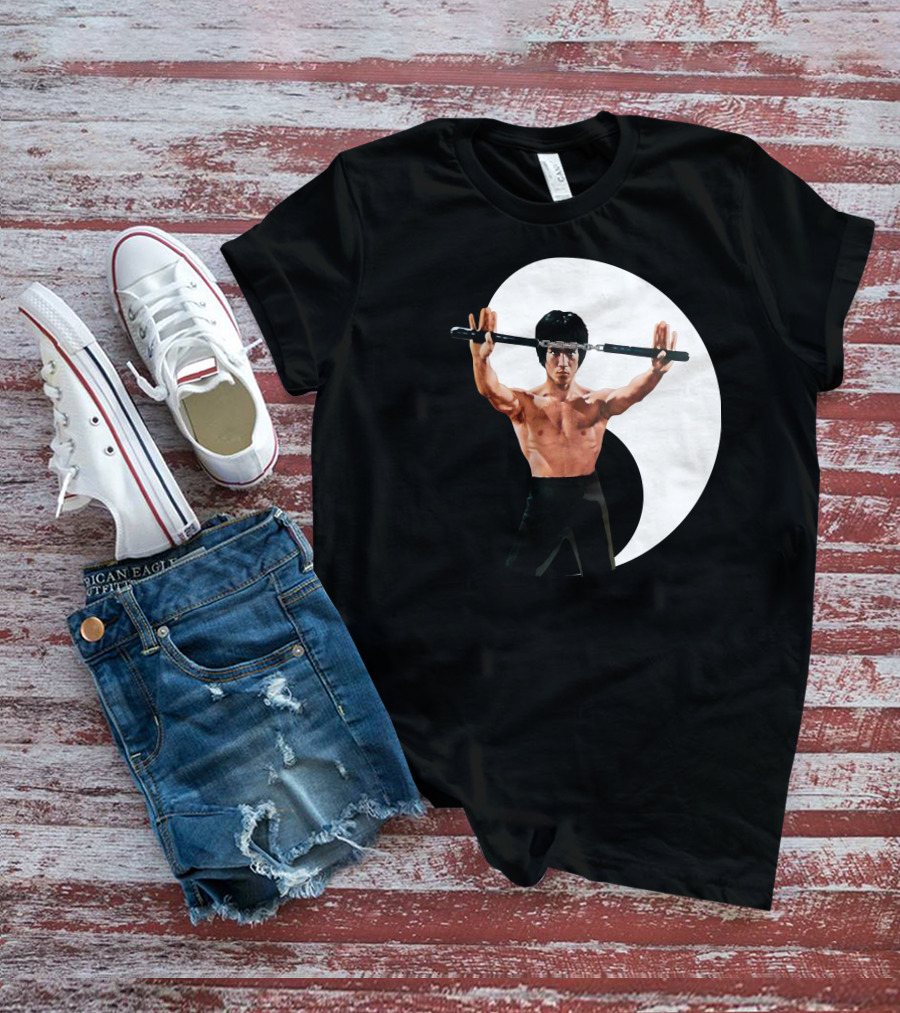 Bruce Lee Nunchaku Pose Yin Yang Martial Arts T-Shirt