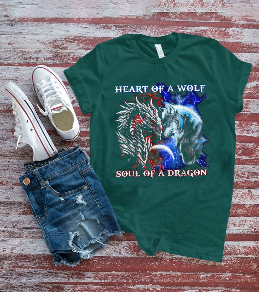 The HEART OF A WOLF SOUL OF A DRAGON Wolf Dragon Lightning Planet Cracked Earth Shirt offers a regular fit. Made from 100% ring-spun cotton that is pre-shrunk to help maintain size and shape after washing. Features reinforced construction details for durability. Available in U.S. standard sizes S-5XL to accommodate various body types.