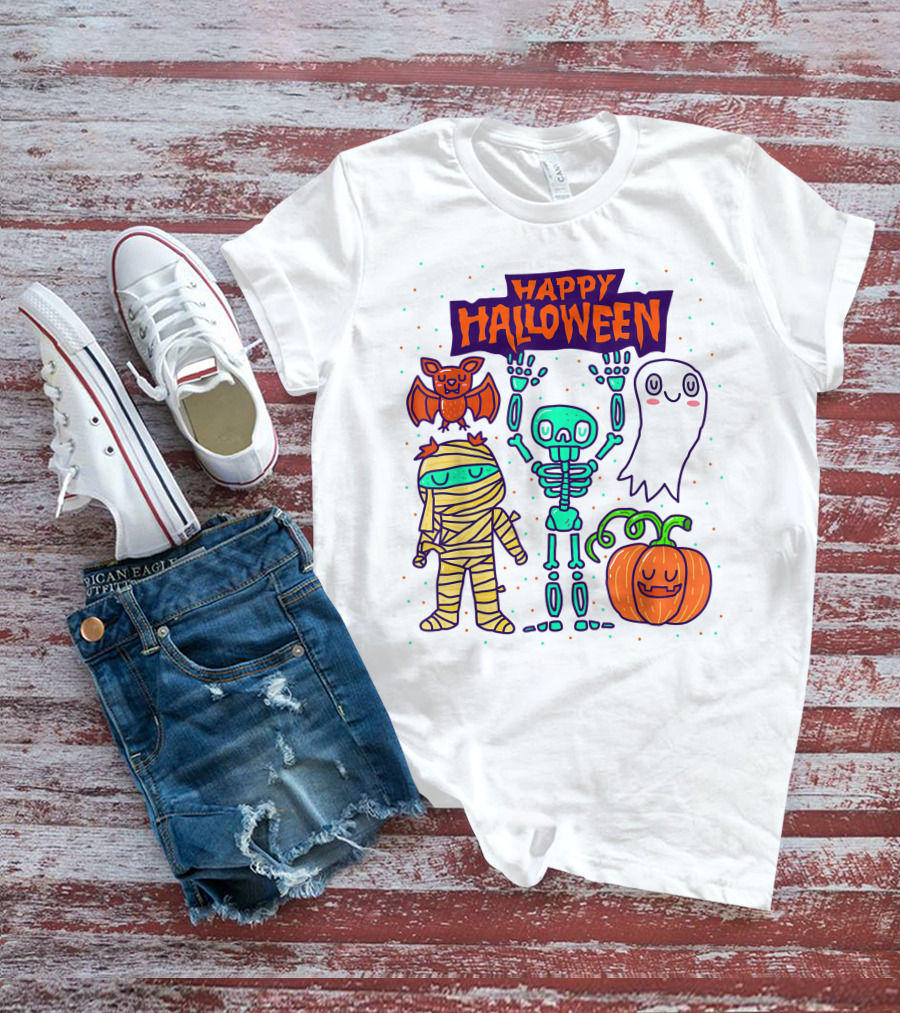 Happy Halloween Skeleton Ghost Pumpkin Mummy Bat T-Shirt