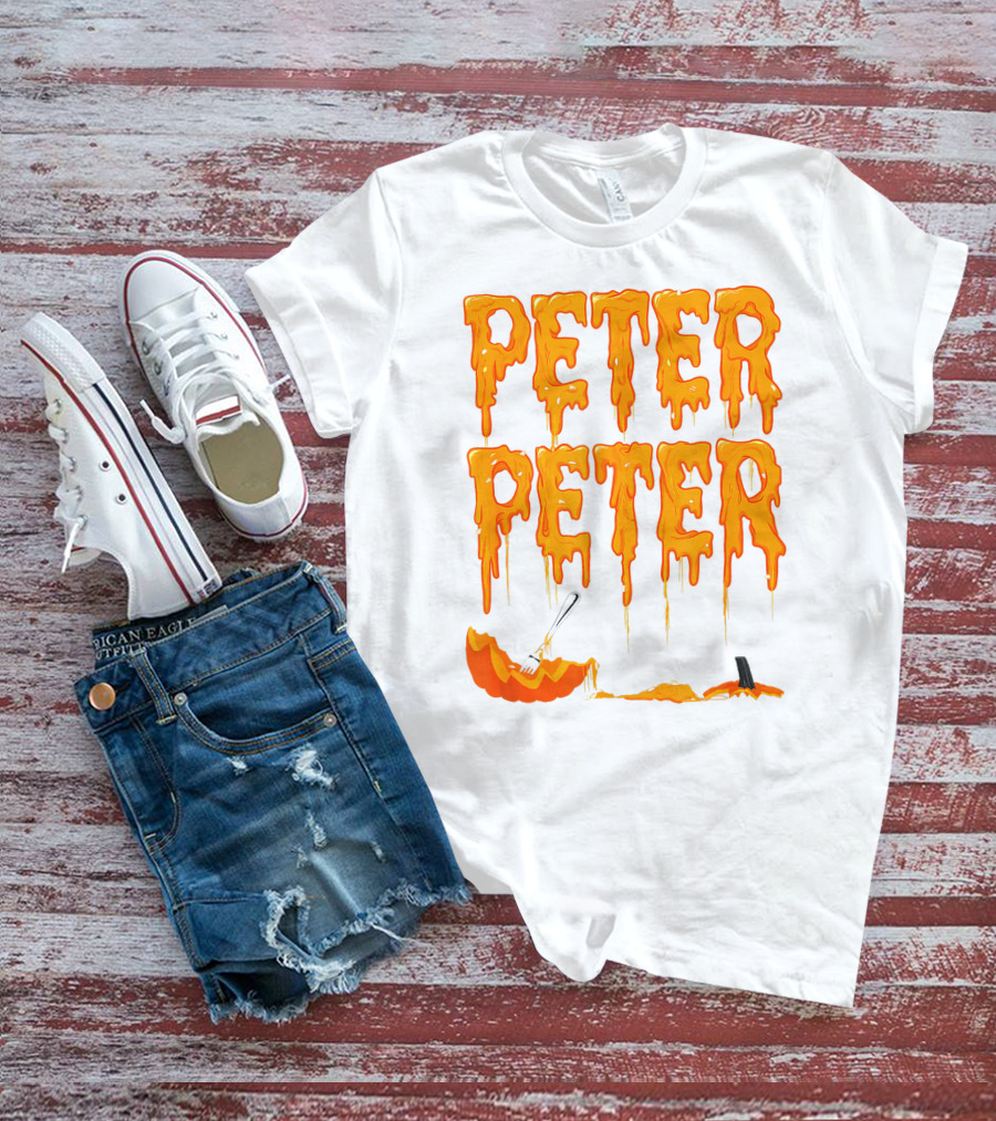 Peter Peter Pumpkin Eater Dripping Orange Text With Fork In Pumpkin T-Shirt