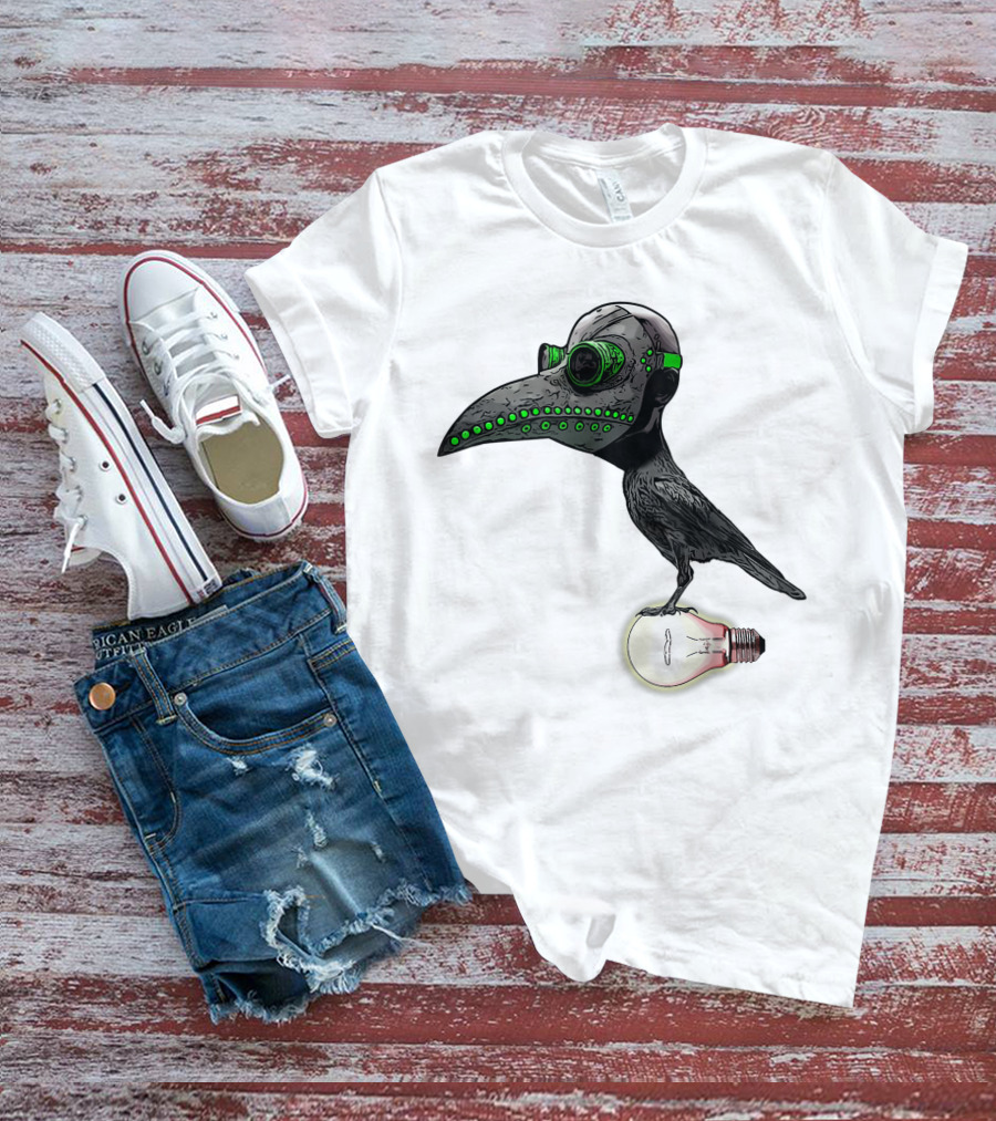 Bird In Plague Doctor Mask Perched On Light Bulb T-Shirt