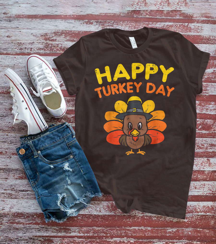 Happy Turkey Day Cute Thanksgiving Pilgrim Turkey T-Shirt