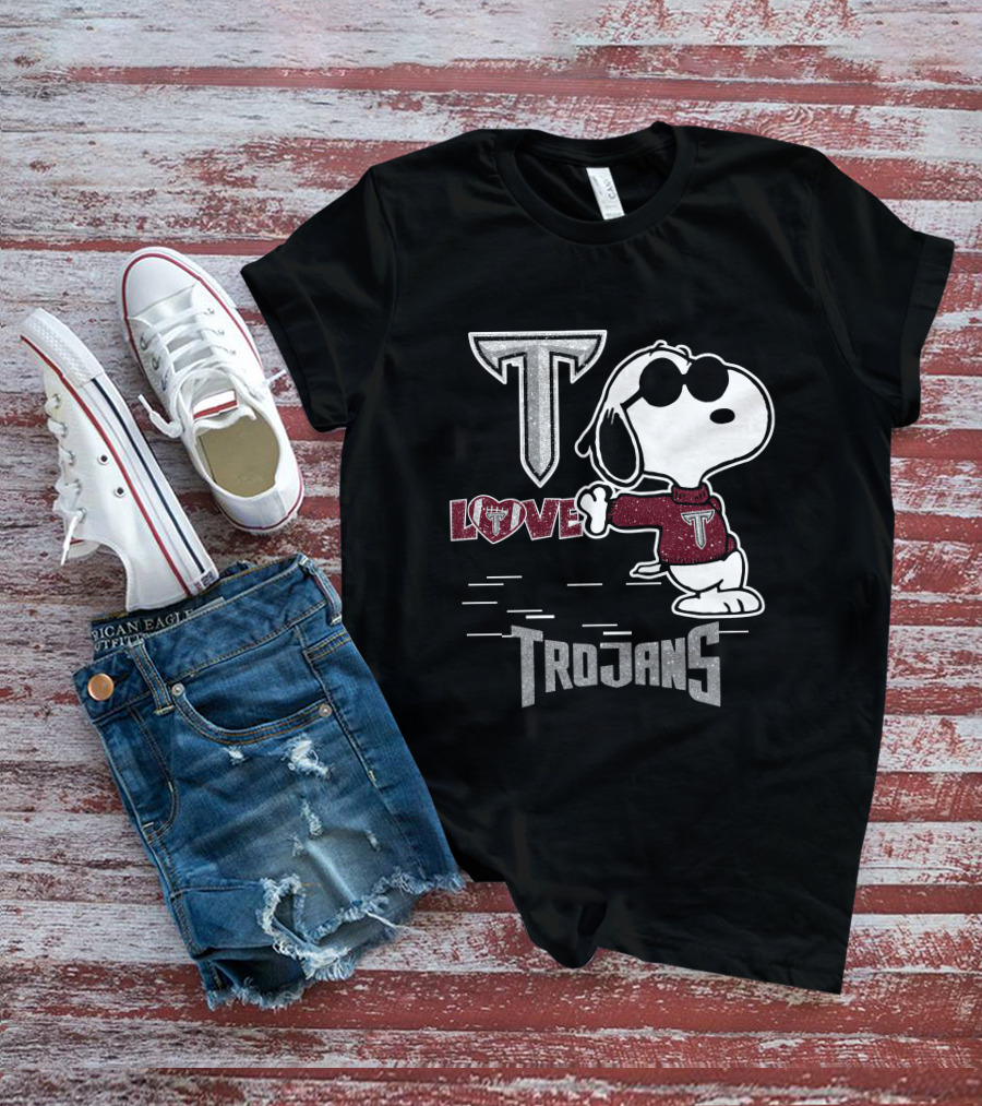 The Snoopy Love T Troy Trojans Shirt offers a regular fit. Made from 100% ring-spun cotton that is pre-shrunk to help maintain size and shape after washing. Features reinforced construction details for durability. Available in U.S. standard sizes S-5XL to accommodate various body types.
