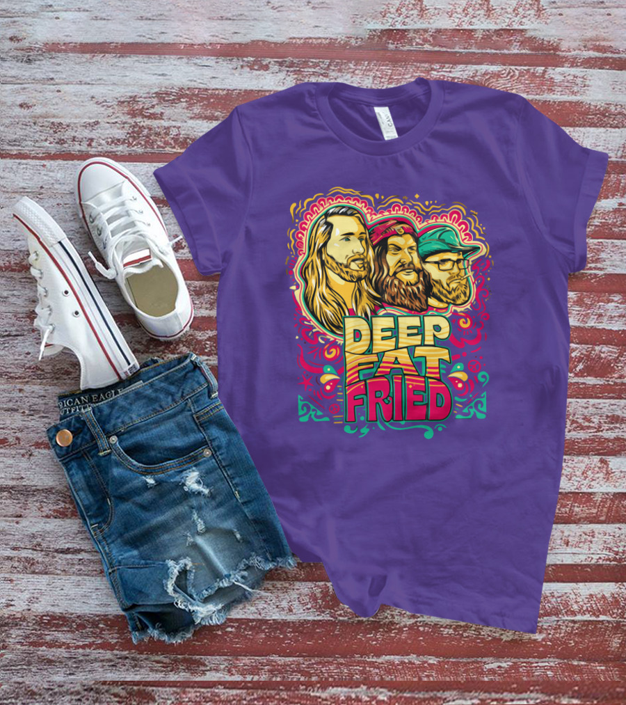 The Deep Fat Fried Psychedelic Trio Shirt offers a regular fit. Made from 100% ring-spun cotton that is pre-shrunk to help maintain size and shape after washing. Features reinforced construction details for durability. Available in U.S. standard sizes S-5XL to accommodate various body types.