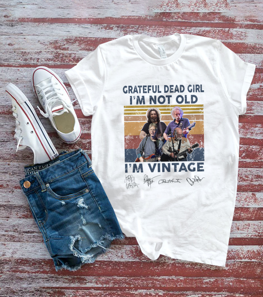 Grateful Dead Girl I'm Not Old I'm Vintage Jerry Garcia Bob Weir Signatures T-Shirt