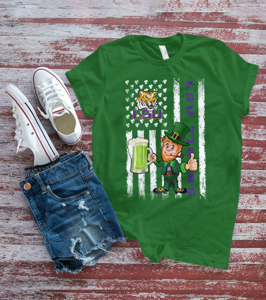 LSU Tigers St Patrick's Day Leprechaun Irish Flag With Beer Mug T-Shirt