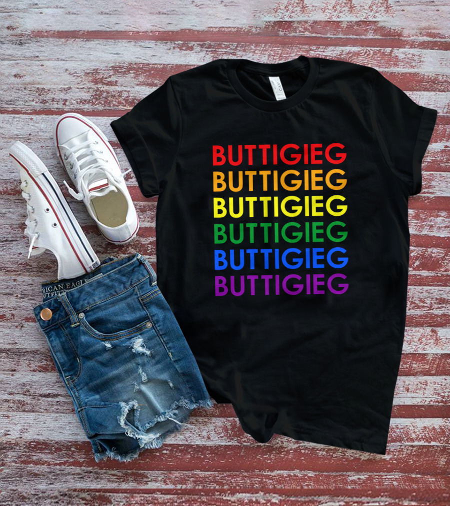 BUTTIGIEG Rainbow Pride Colors Text T-Shirt