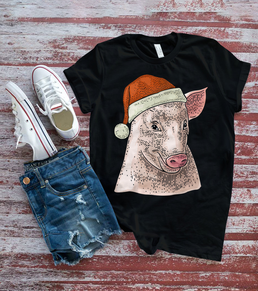The Pig in Santa Claus Cap Christmas Shirt offers a regular fit. Made from 100% ring-spun cotton that is pre-shrunk to help maintain size and shape after washing. Features reinforced construction details for durability. Available in U.S. standard sizes S-5XL to accommodate various body types.