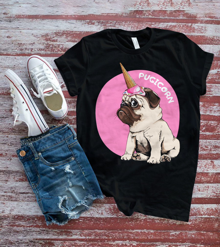 The Pugicorn Ice Cream Cone Hat Cute Pug Shirt offers a regular fit. Made from 100% ring-spun cotton that is pre-shrunk to help maintain size and shape after washing. Features reinforced construction details for durability. Available in U.S. standard sizes S-5XL to accommodate various body types.