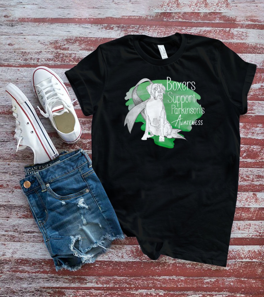 Boxers Support Parkinson's Awareness With Ribbon And Dog T-Shirt