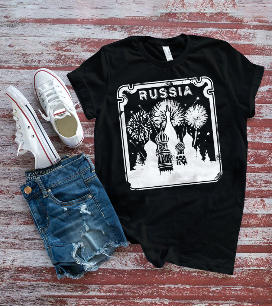 The Russia Saint Basil's Cathedral Fireworks Shirt offers a regular fit. Made from 100% ring-spun cotton that is pre-shrunk to help maintain size and shape after washing. Features reinforced construction details for durability. Available in U.S. standard sizes S-5XL to accommodate various body types.