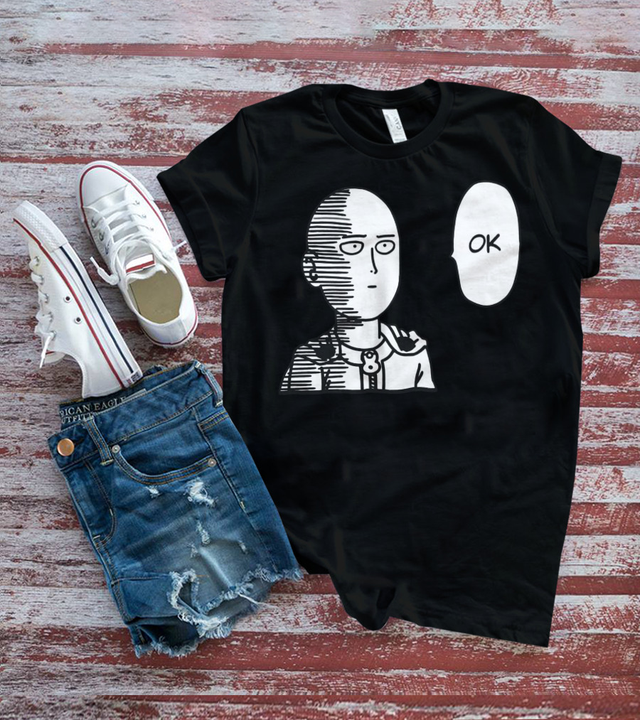 The Saitama OK Manga Style Face Expression Shirt offers a regular fit. Made from 100% ring-spun cotton that is pre-shrunk to help maintain size and shape after washing. Features reinforced construction details for durability. Available in U.S. standard sizes S-5XL to accommodate various body types.