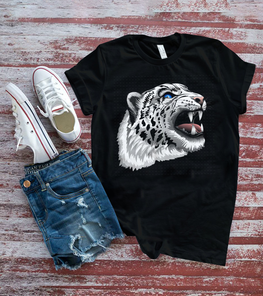 The Snow Leopard Fierce Roaring Head Shirt offers a regular fit. Made from 100% ring-spun cotton that is pre-shrunk to help maintain size and shape after washing. Features reinforced construction details for durability. Available in U.S. standard sizes S-5XL to accommodate various body types.