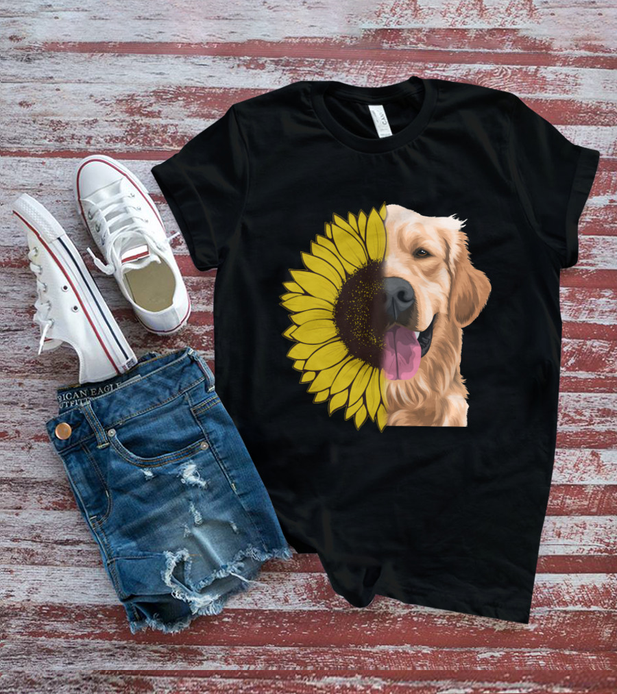Golden Retriever And Sunflower Harmony T-Shirt