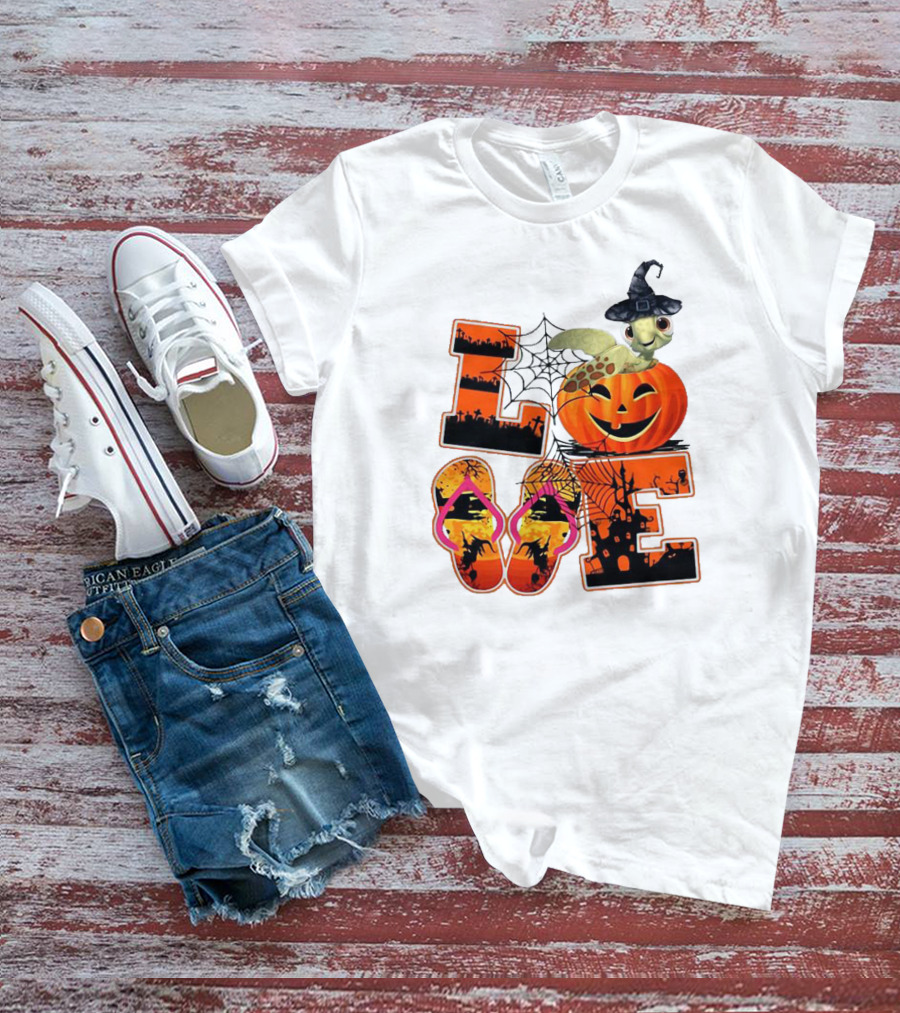 Halloween Love Turtle Pumpkin Spider Web Flip Flops T-Shirt