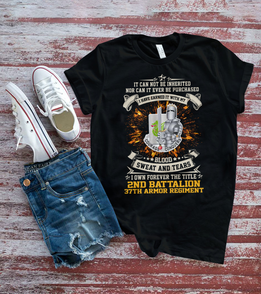 2Nd Battalion 37Th Armor Regiment Blood Sweat And Tears Courage Conquers T-Shirt