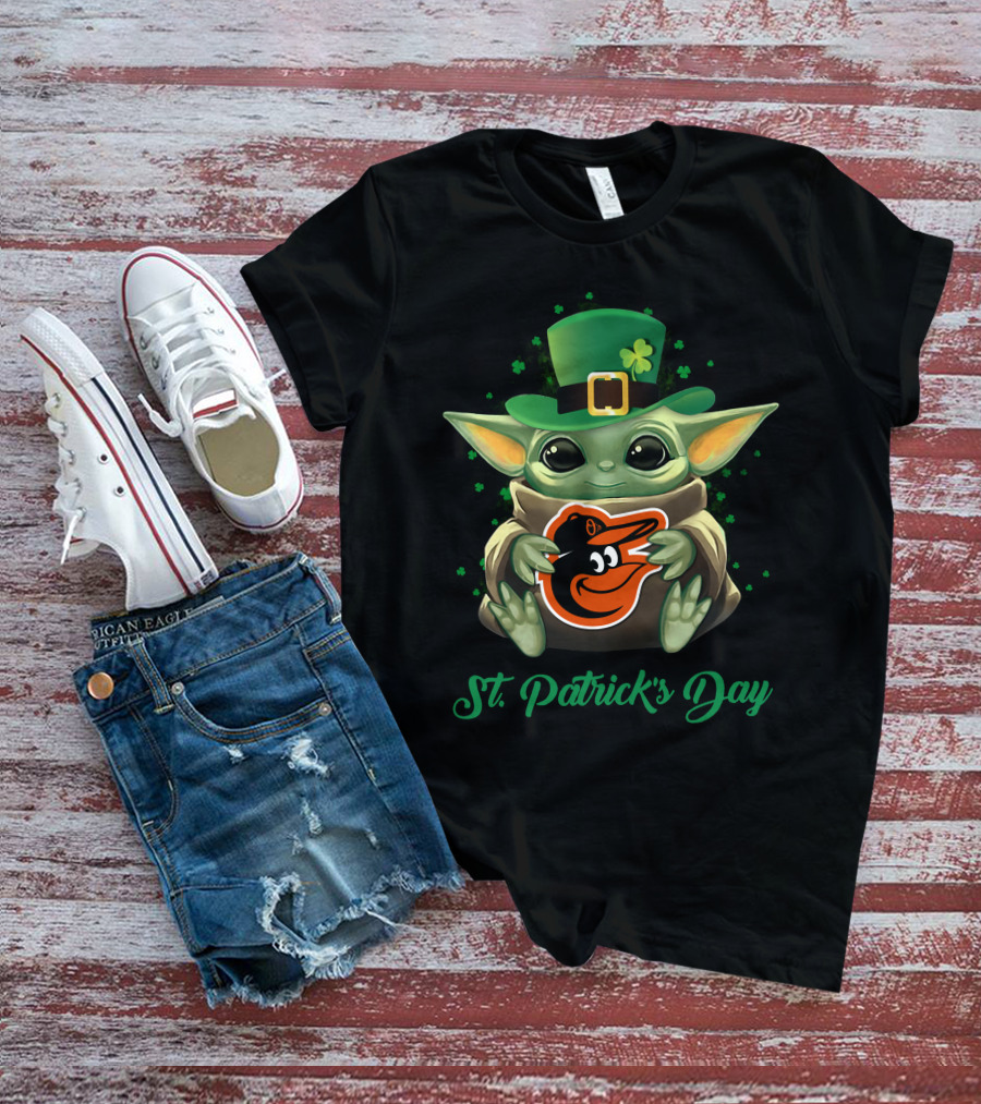 St. Patrick's Day Baltimore Orioles Baby Yoda T-Shirt