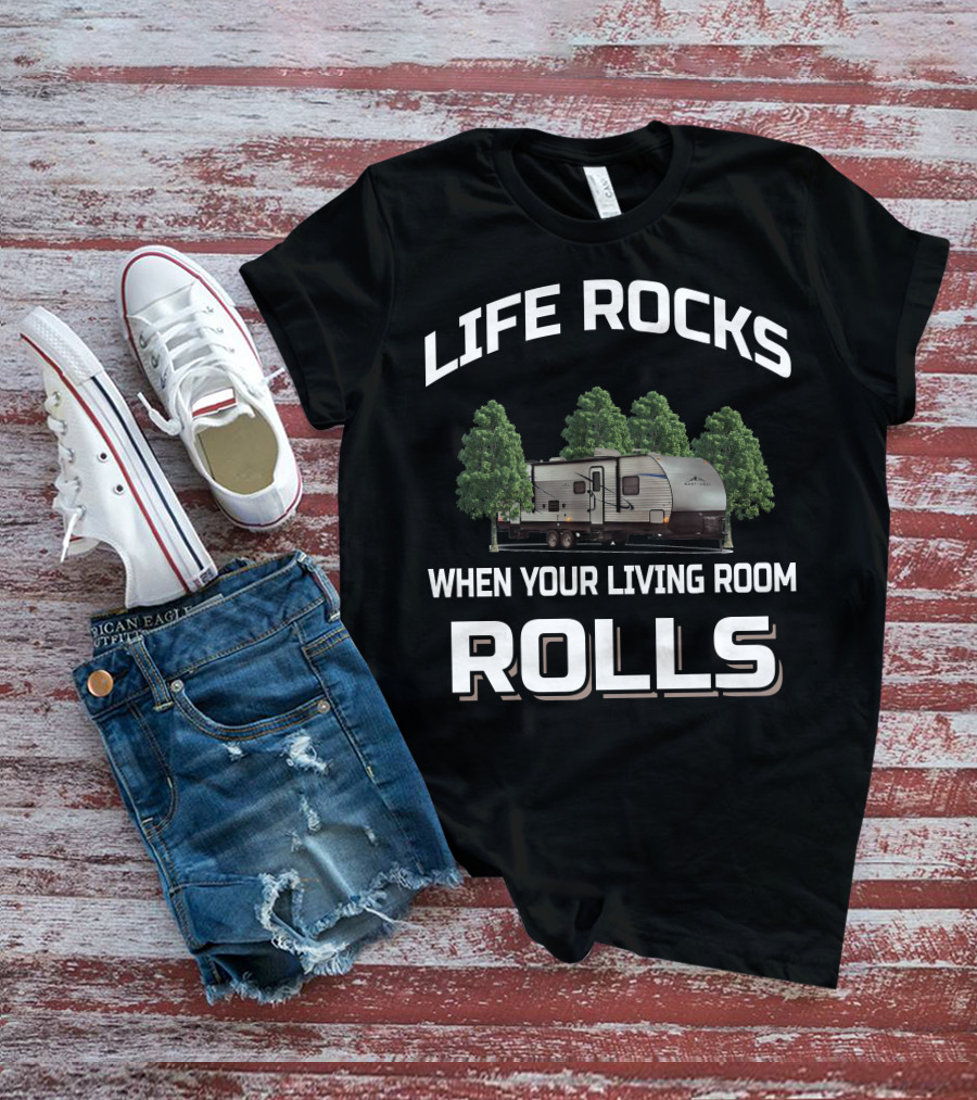 LIFE ROCKS WHEN YOUR LIVING ROOM ROLLS EAST TO WEST RV T-Shirt