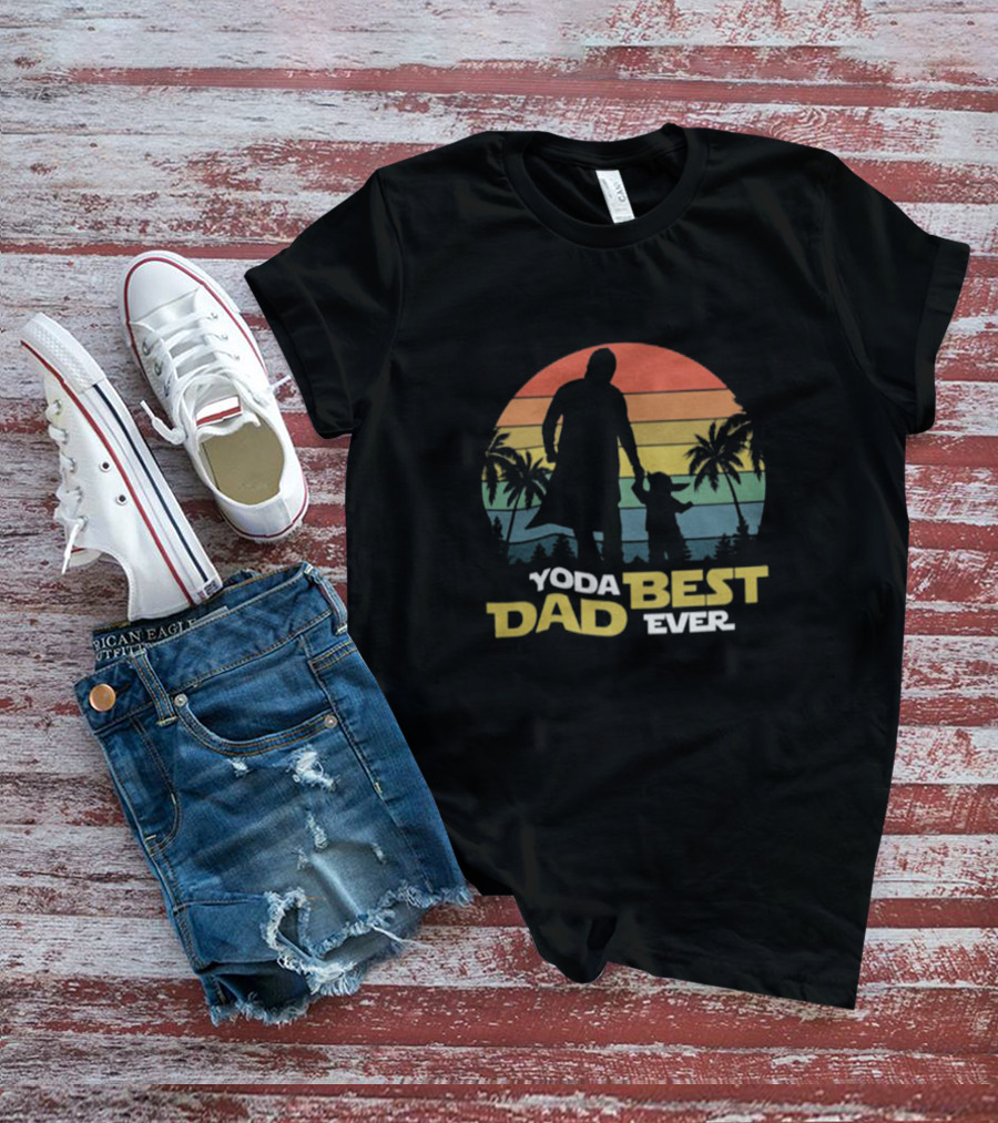 Yoda Best Dad Ever Retro Sunset Palm Trees T-Shirt