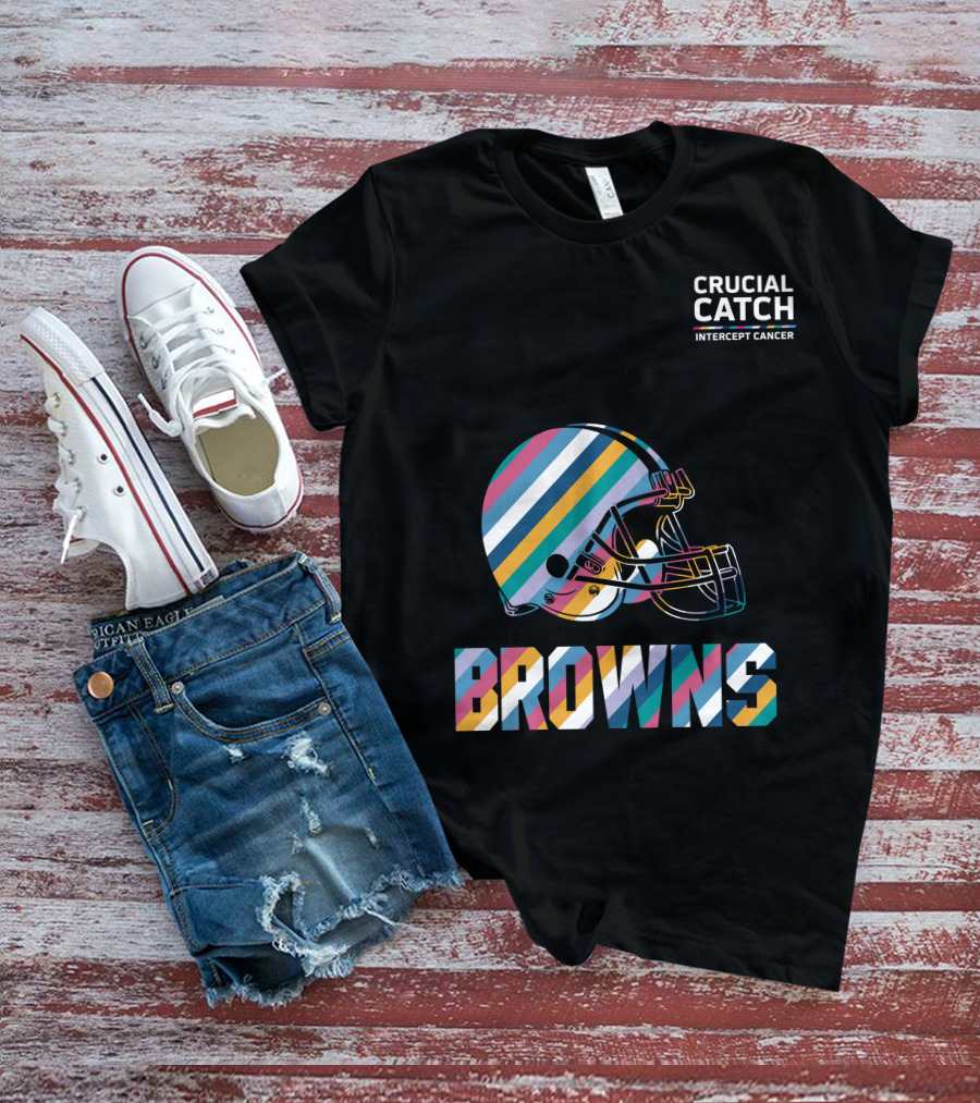 Browns Crucial Catch Intercept Cancer Helmet Stripes T-Shirt
