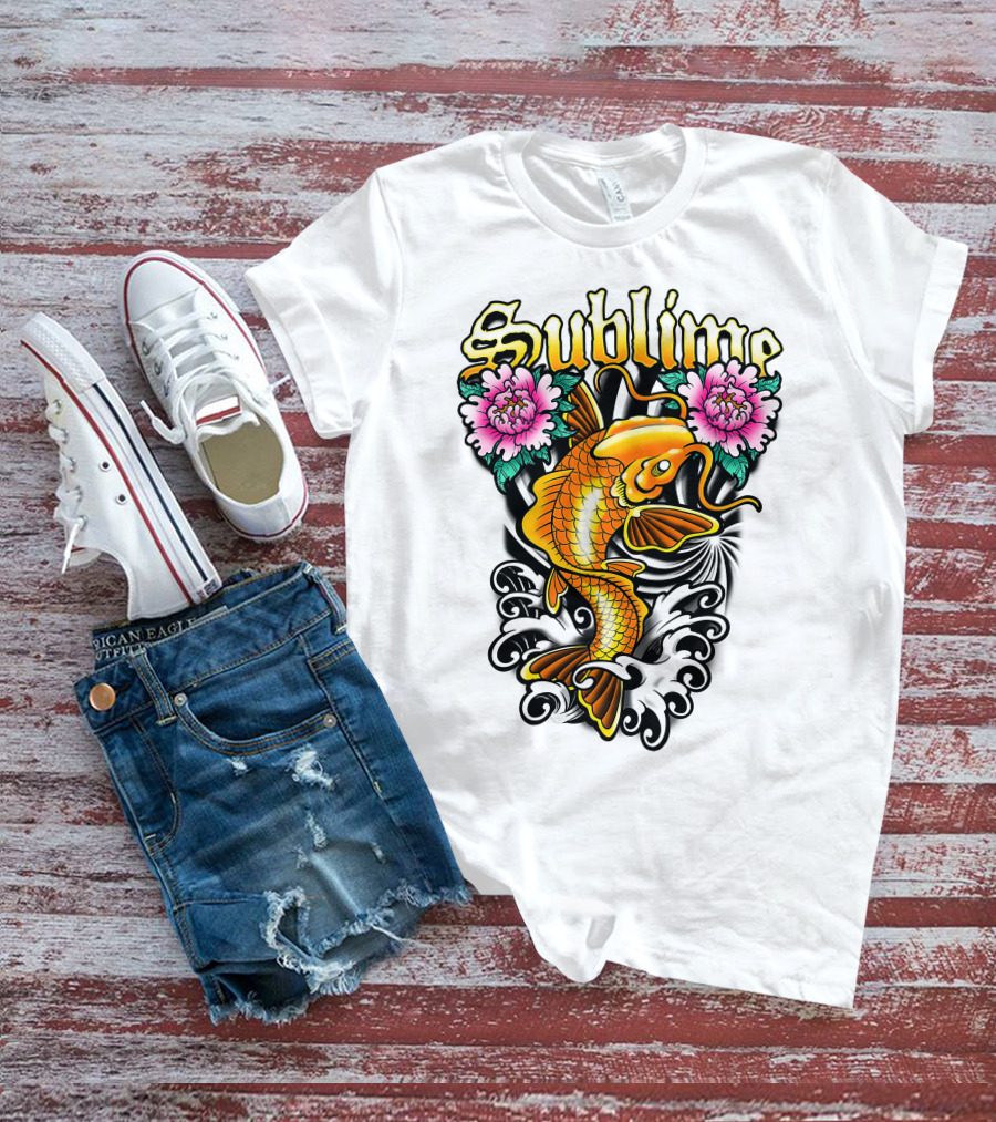 The Sublime Koi Fish With Floral Waves Shirt offers a regular fit. Made from 100% ring-spun cotton that is pre-shrunk to help maintain size and shape after washing. Features reinforced construction details for durability. Available in U.S. standard sizes S-5XL to accommodate various body types.