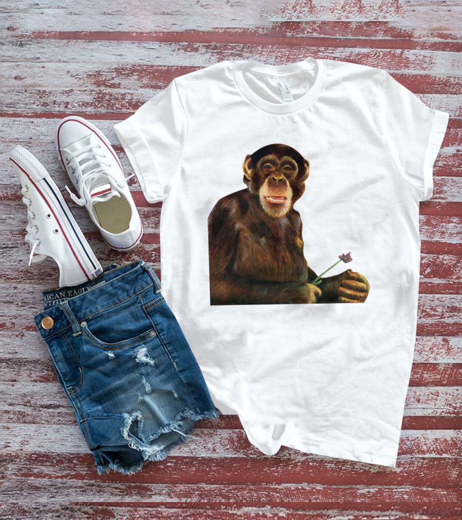 Chimpanzee Holding Purple Flower T-Shirt