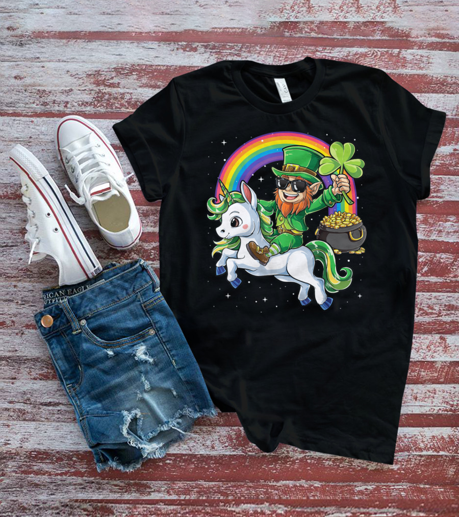 Unicorn Leprechaun St Patricks Day Girls Kids Women Rainbow Shamrock Gold T-Shirt