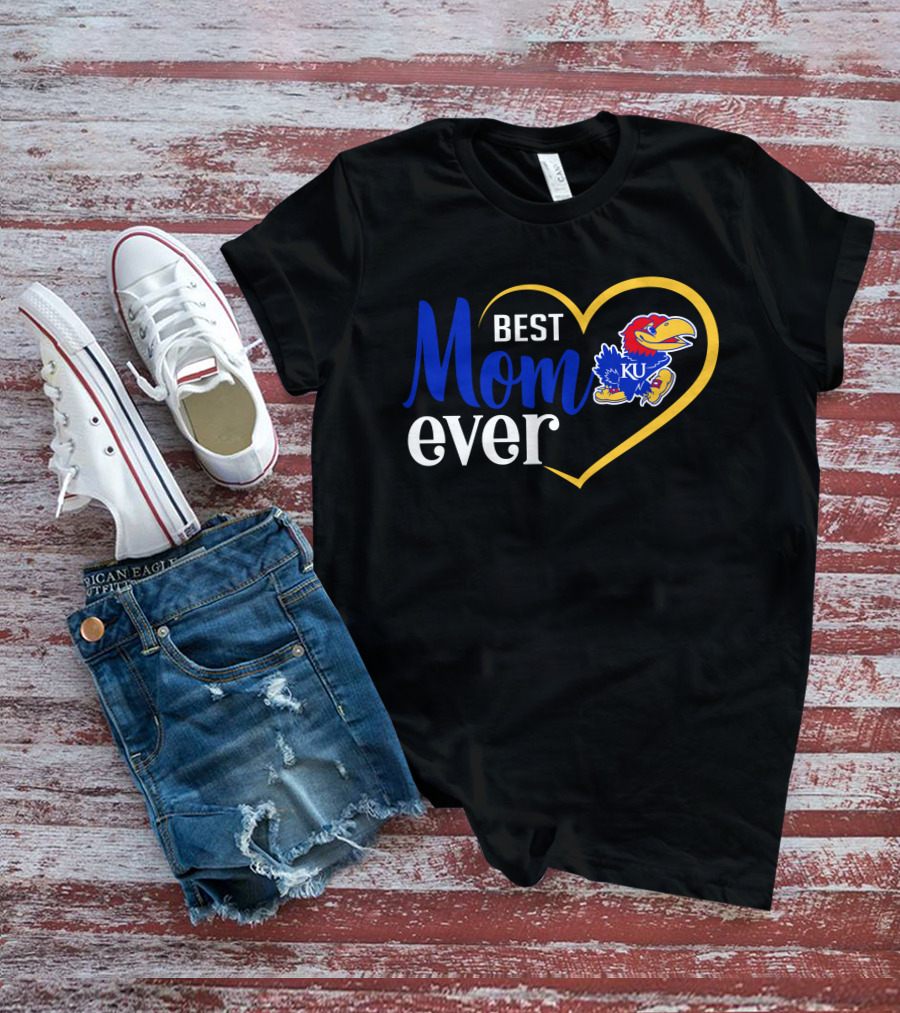 Kansas Jayhawks Best Mom Ever Heart Emblem Ku T-Shirt