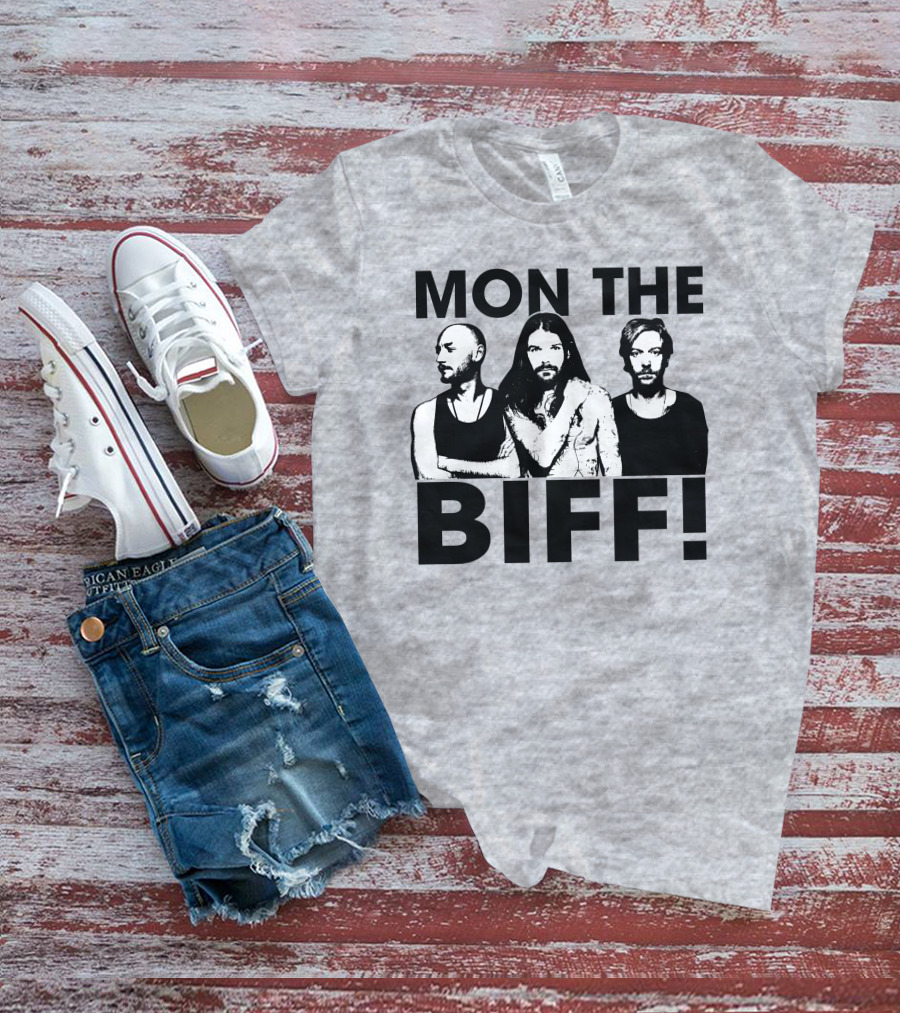 The Mon The Biff! Shirt offers a regular fit. Made from 100% ring-spun cotton that is pre-shrunk to help maintain size and shape after washing. Features reinforced construction details for durability. Available in U.S. standard sizes S-5XL to accommodate various body types.