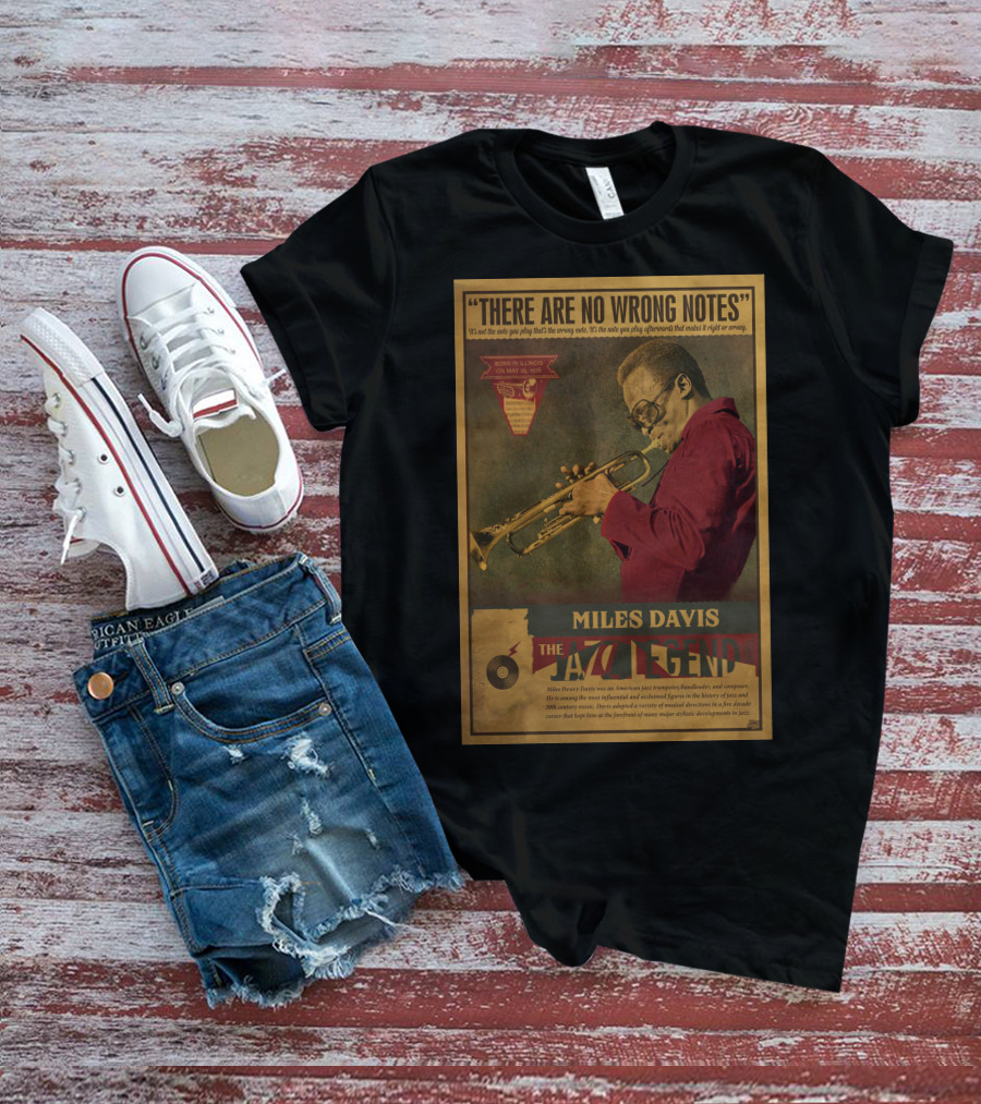 The There Are No Wrong Notes Miles Davis The Jazz Legend Shirt offers a regular fit. Made from 100% ring-spun cotton that is pre-shrunk to help maintain size and shape after washing. Features reinforced construction details for durability. Available in U.S. standard sizes S-5XL to accommodate various body types.