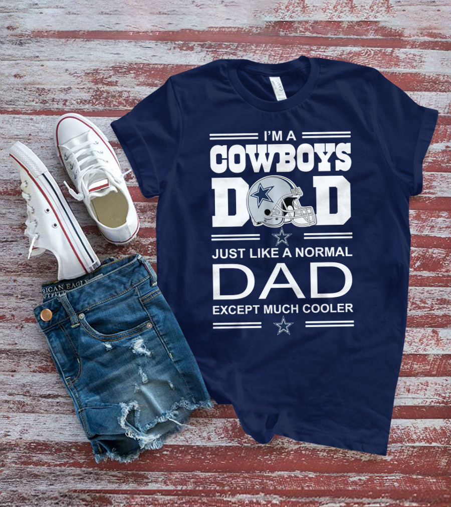 The I'm a Cowboys Dad Just Like a Normal Dad Except Much Cooler Shirt offers a regular fit. Made from 100% ring-spun cotton that is pre-shrunk to help maintain size and shape after washing. Features reinforced construction details for durability. Available in U.S. standard sizes S-5XL to accommodate various body types.