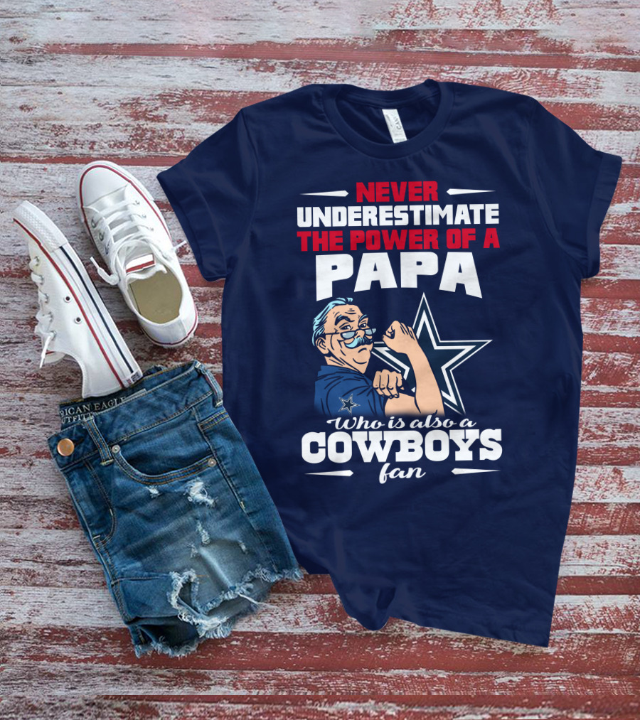 NEVER UNDERESTIMATE THE POWER OF A PAPA WHO IS ALSO A COWBOYS FAN T-Shirt