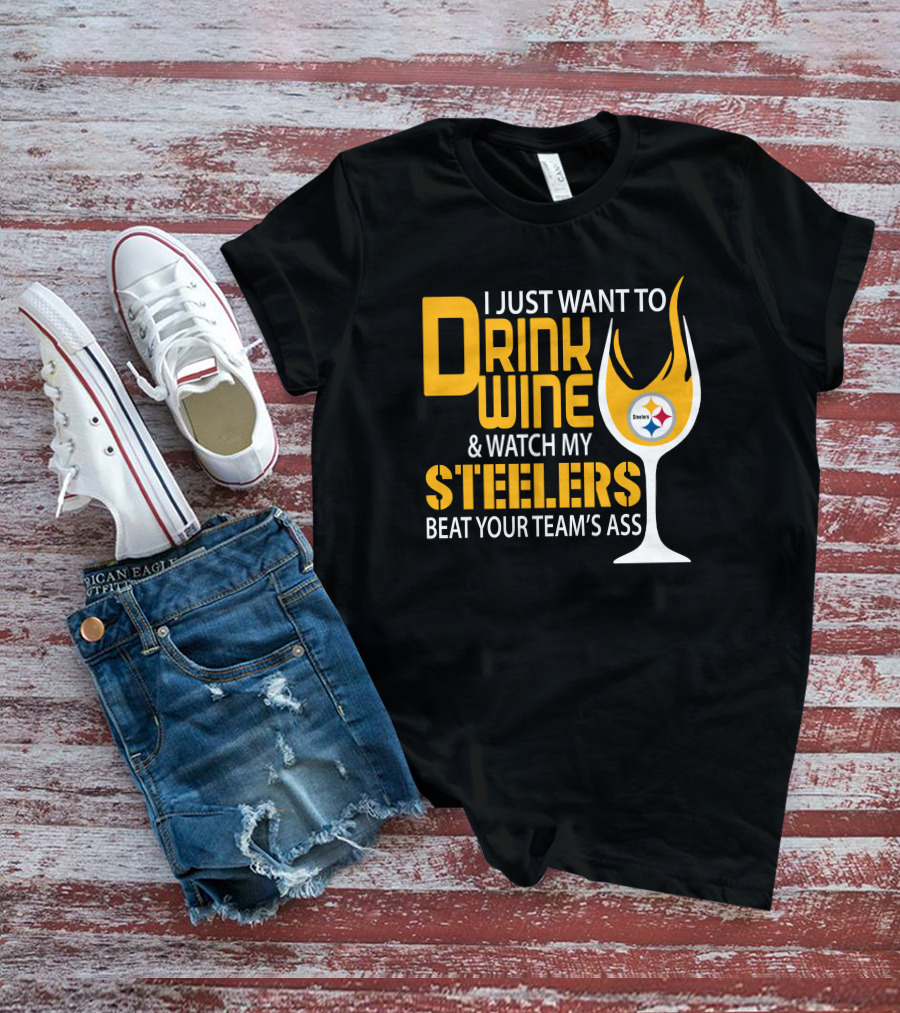 I Just Want To Drink Wine And Watch My Steelers Beat Your Team's Ass T-Shirt