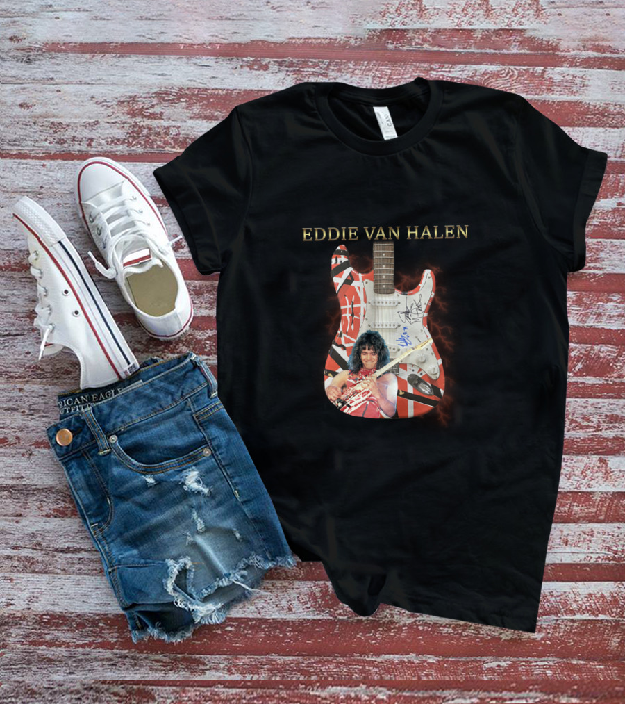 Eddie Van Halen Signature Guitar With Iconic Red And White Stripes T-Shirt