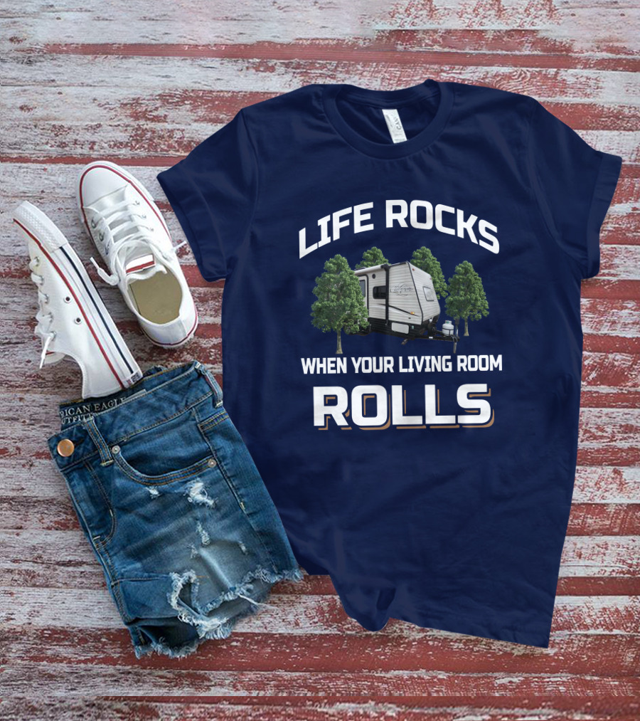 Life Rocks When Your Living Room Rolls Clipper 17FQ Camper Trailer Forest Camping Adventure T-Shirt