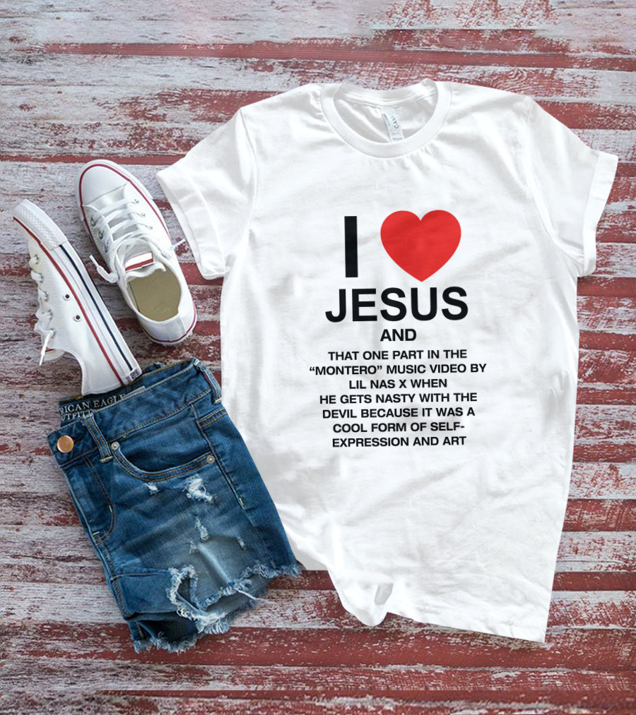 I Love Jesus And That One Part In The Montero Music Video By Lil Nas X When He Gets Nasty With The Devil T-Shirt
