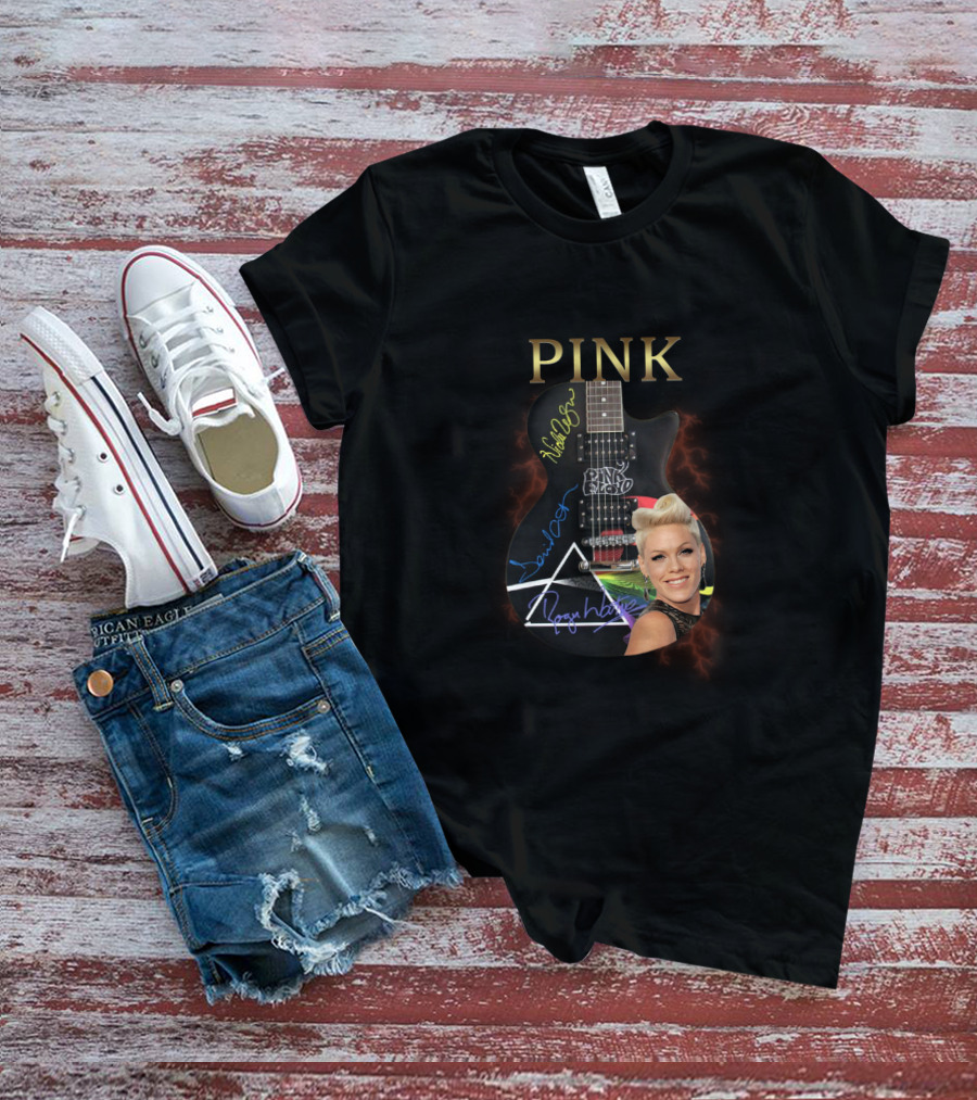 The PINK Dark Side Guitar with Autographs Shirt offers a regular fit. Made from 100% ring-spun cotton that is pre-shrunk to help maintain size and shape after washing. Features reinforced construction details for durability. Available in U.S. standard sizes S-5XL to accommodate various body types.